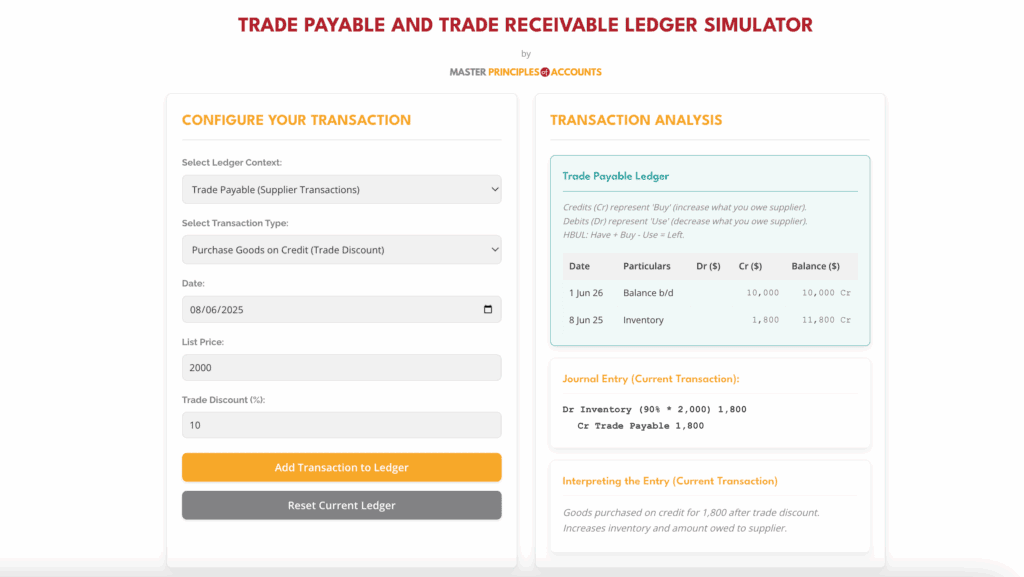 TRADE PAYABLE LEDGER SIMULATOR