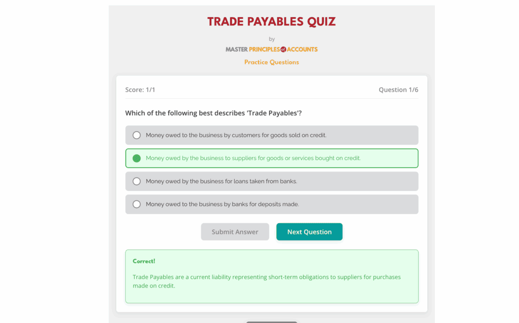 MCQ QUIZ FOR TRADE PAYABLE