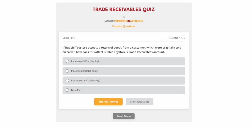 MCQ for Trade Receivable
